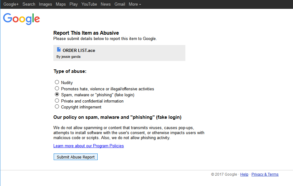 When (or if) Google gets around to actually doing anything about the malware they're knowingly hosting & the spam that they're facilitating, we'll update this article. Personally, I'm curious to see if they manage to address both parts of the issue (the spammer GMail account and the Google Drive-hosted malware), or if they pull an OVH and only deal with part of the problem.