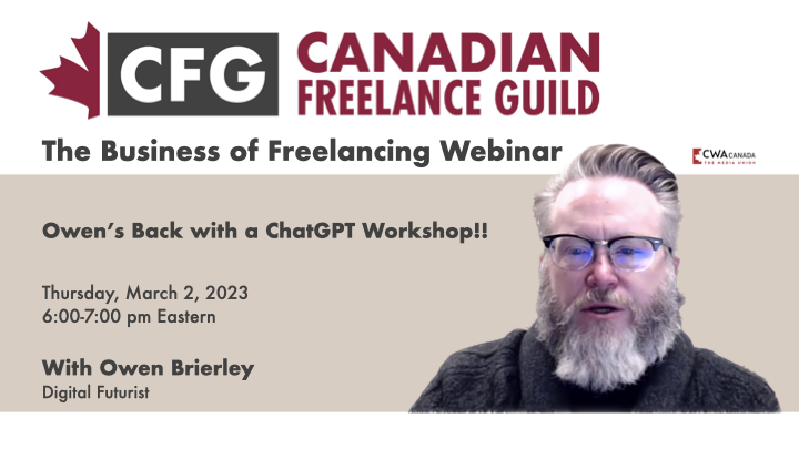 This session was intended for freelancers who have yet to delve into the world of Artificial Intelligence using ChatGPT, the wildly popular tool that will either lead to the greatest explosion of human creativity in history, or spell the end of human domination of the planet.