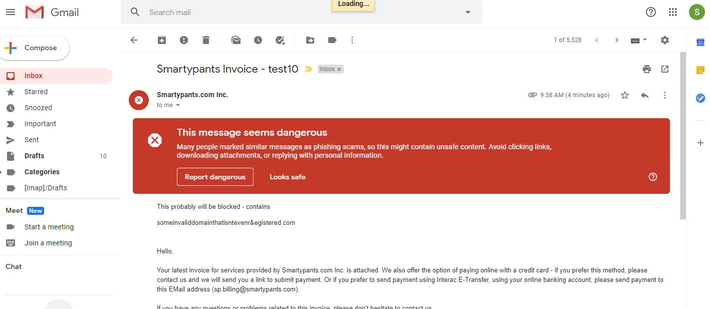 For more than six months now, since Novembe 2019, GMail has repeatedly been blocking legitimate EMails from us, and consistently ignoring all of our requests that they fix the issue. We first became aware of the issue when several of our customers informed us that they hadn't received EMails they were expecting from us, with invoices for the services we provide to them. After some further checking, it turned out that the messages had ended up in the "Spam" folder of the recipient's GMail accounts, and GMail had flagged them as "Dangerous." Normally, marking the messages as "Safe" and/or adding the sender's address to the contact list will solve the issue - though in this case, the EMails from us were still filtered into the spam folder even after following those steps.